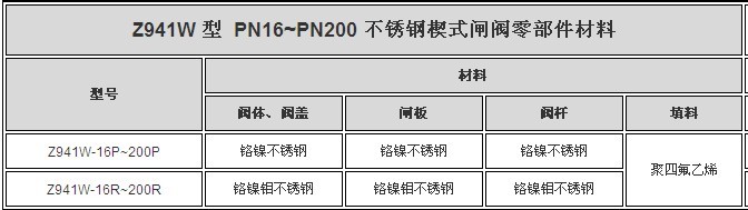 Z941W电动不锈钢法兰闸阀主要零件材料