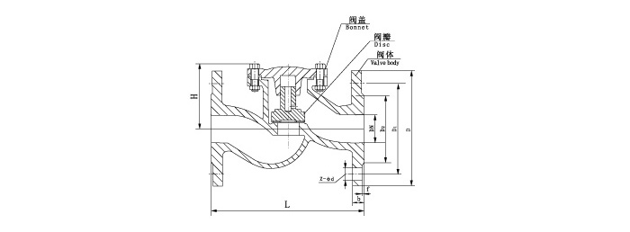 用途:本阀适用于公称压力≤1.6MPa的水、蒸汽介质的管路上,作防止介质逆流的单向启闭用。